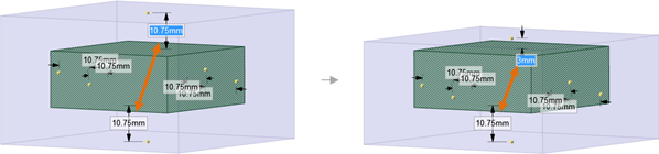 Erzwingt die Symmetrie der Abmessungen. Diese Option deaktivieren, wenn Werte für Abmessungen eingegeben werden sollen und die gegenüberliegenden Abmessungen nicht geändert werden sollen. |