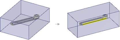 Mit der Werkzeughilfe Ausrichtung festlegen kann die Ausrichtung der Umhüllung relativ zur Konstruktion oder zur Achse eines Koordinatensystems geändert werden. |