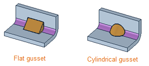 "Eckversteifung" im Menü "Erstellen" auf der Registerkarte "Blech" können in der Konstruktion Eckversteifungen erstellt werden. Eine Eckversteifung ist ein Bereich des Metalls in einer Biegung, der nicht gebogen, sondern in die Biegung gezwungen wird, um das Teil zu verstärken oder zu versteifen. Es können flache oder zylindrische Eckversteifungen erstellt werden. Beide Arten sind in der Abbildung unten dargestellt: