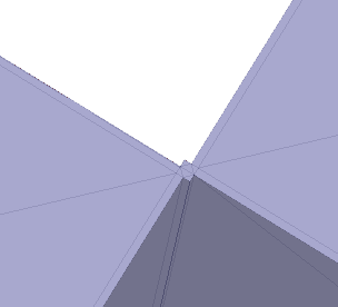 toolWhen the Over-connected tool is used on the example shown above, it creates a small faceted volume around the over-connected edge. The image below shows the result when zoomed-in to the edge.