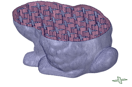 The image below shows the model shelled with a Hex infill. The body was split and moved to expose the Infill.