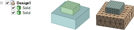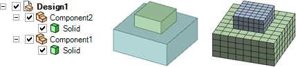 2 つのパーツは別々のコンポーネントに存在し、ルートパーツの [共有トポロジー] は [なし] に設定されているので、ANSYS はこれらのパーツに別々のメッシュを作成します。