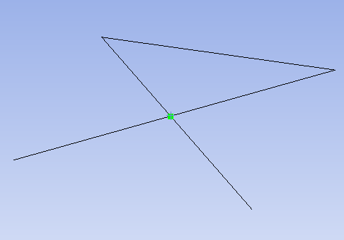 ANSYS は共有トポロジーを使用して、2 つのブロックをメッシュします。青いブロックにはインプリントされた新しい面が加わり、この面は緑のブロックと青いブロックで共有されます。小さいほうのブロックの底部に沿って、メッシュノードが配置されている点に注意してください。