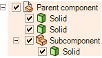 [共有トポロジー] プロパティが [共有] (または ANSYS 15.0 と16.0 で [マージ]) に設定されているコンポーネントの下の任意の場所にボディを配置します。任意の場所には (サブアセンブリの [共有トポロジー] の設定とは関係なく) サブアセンブリも含まれます。