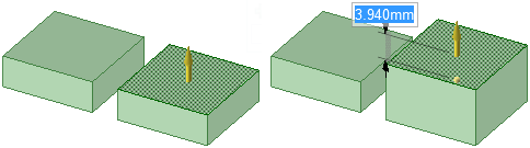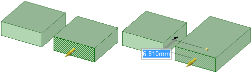 整列ペアの一方の面をプルすると、1 つのオブジェクトが変化し、もう一方が移動します。