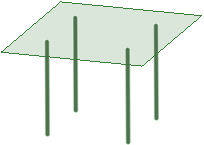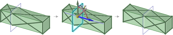 以下の例では、プレーンとソリッドの交差部分に斜めの各ビームの一方の先端が接触しています。プレーンを移動するとビームが変更されます。