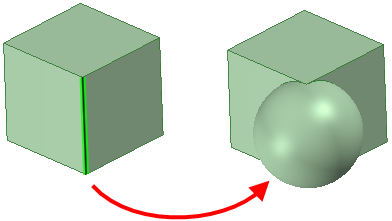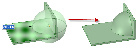 (オプション) 既存のボディが球とオーバーラップしている場所で既存のボディから材料