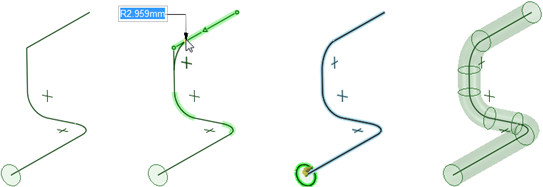 3D 直線でコーナーフィレットを作成し、次にスイープしてパイプを作成