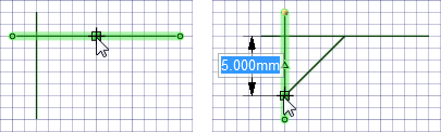 必要に応じて、選択した最初の直線または円弧が拡張されます。