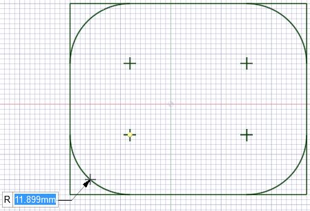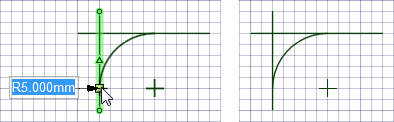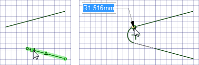 [選択] ツールでコーナーフィレットをドラッグし、半径を変更します。正接は保持されます。