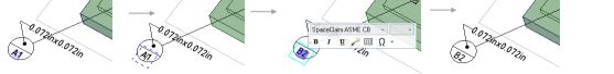 データムターゲットを作成するとき、ディフォルトでは、データムコールアウトの高さ比率は 3.5 です。この設定は、コールアウトの円のサイズを現在のテキストの高さの何倍にするかを指定します。たとえば、ASME