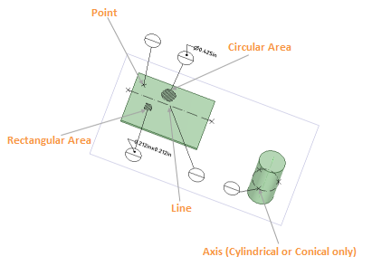 データムターゲットツールを使用します。下図に示すように、次のデータムターゲットタイプを挿入できます。