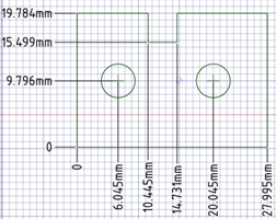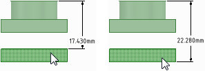 デザイン上にマウスカーソルを移動すると、可能な寸法がプレビューできます。