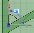 移動ハンドルの赤色の直線軸から角度の指標が表示されます。