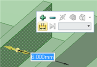 デザインの点上にマウスカーソルを移動して Shift キーを押し、選択したオブジェクトと点間の寸法を設定します。