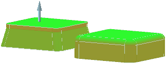[勾配カーブ] ツールガイドを使用して、(選択した面、勾配の方向、および片面または両面の角度によって作成される) 一時カーブを選択し、ストラクチャーツリーでカーブを作成します。カーブは現在のレイヤ色で表示されます。 |
