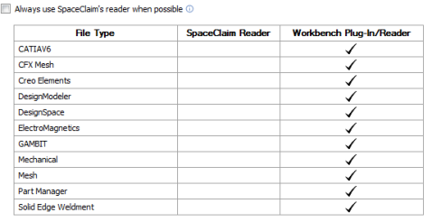 SpaceClaim に対して、編集のために他のさまざまな他のモデリングアプリケーションからファイルを開いたり挿入できます。また、SpaceClaim デザインはさまざまなファイルタイプとして保存できます。SpaceClaim 以外のファイルで頻繁に作業する場合は、ファイルオプションを設定し、必要に応じてインポートとエクスポートの処理を最適化することをお勧めします。