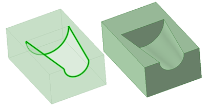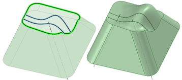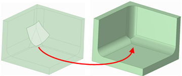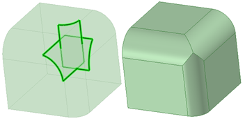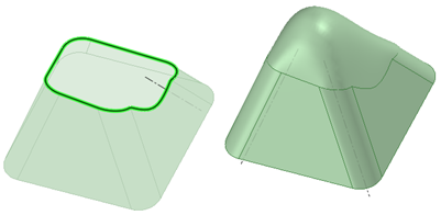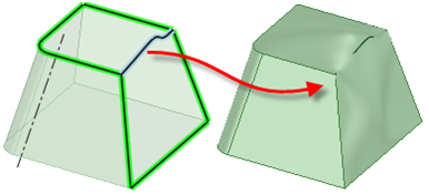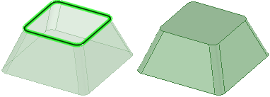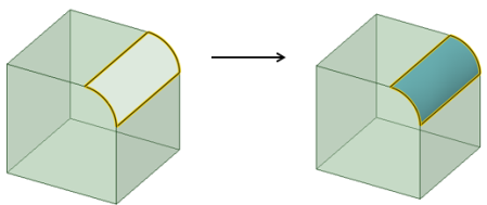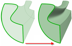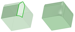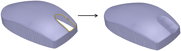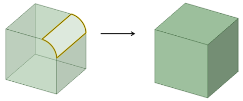 [フィル] ツールを使用して、サーフェスエッジを簡略化して、サーフェスにふたをし、ソリッドを形成することもできます。面とエッジの組合せを選択して、それらの面やエッジを 1 つの新しい面で置換できます。