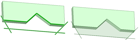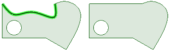 フィルするスケッチラインがエッジと同じプレーン上でスケッチされていても、線およびエッジをフィルできます (線が面にインプリントされてエッジになっている場合、エッジをフィルすると線は削除されます)。