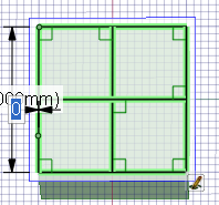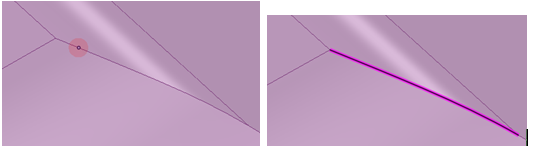 ギャップの大きさがスケッチ面の小グリッド間隔の 1.5 倍未満の場合は、エッジが延長されてギャップが閉じられます。すき間がそれより大きい場合、ステータスバーにメッセージが表示され、すき間の終点が点滅します。