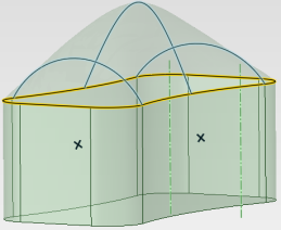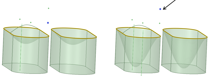 [ガイドカーブ] を [フィル] ツールから選択するとき、プレビューは複数のガイドカーブの選択を続けることができます。これにより、ガイドカーブがジオメトリにどのように影響するか理解できます。
