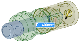 名前選択の代わりに、基準となる寸法が作成されました。基準となるこの寸法を使用してラウンドの半径を変更できます。これは、選択した面がラウンドであり、ラウンドには [プロパティ] パネルで指定できる寸法プロパティがあるためです。