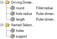 Workbench のストラクチャーツリーの [名前選択] を展開して、SpaceClaim から送信された名前選択グループを表示します。