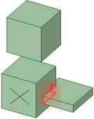 [許容範囲 オブジェクト間の距離が許容値より小さいか等しい場合、交差していると考えられます。 右側の図では、オブジェクト間の距離は、0.01 で、許容範囲内にあります。 |