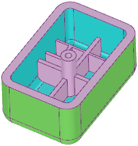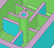 拡大すると、リブの基準側とオフセット側のハイライト表示に誤りがあることがわかります。[サイドの入れ替え] ツールガイドを使用すると、基準側とオフセット側を入れ替えることができます。中立面は青色の基準面から作成されるため、この操作は重要です。面のオフセットが緑色にハイライト表示されるのは、単に、中立面を定義するときに面のオフセットを見やすくするためです。