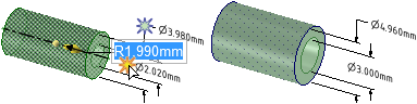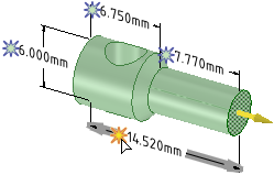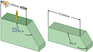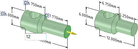 プルの矢印または移動ハンドルの方向に変更ができない場合、入力した寸法を実現するために逆の方向に変更が試行されます。