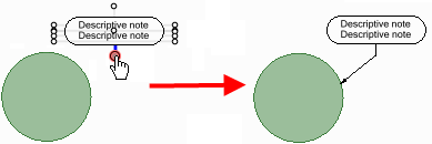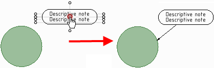 ) 上の注記にマウスカーソルを合わせ、注記に引出線を結合する方法を確認します。