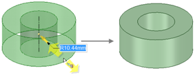 ボディ、サーフェスなどを削除するには、削除オプションを選択します。追加方向にプルする場合には、何も変化はありません。このオプションをその他の [プル] オプションと組み合わせることができます。 |