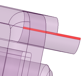 ] ツールでは、重複している面を検出します。以下の例は、インポートしたサーフェスモデルです。下側の面が、上側の面と接した点を過ぎて延びています。