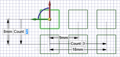 スケッチカーブのパターンは 2 つの方向に継承される。上記のパターンには、X 方向の 3 つの正方形と Y 方向の 2 つの正方形が含まれています。