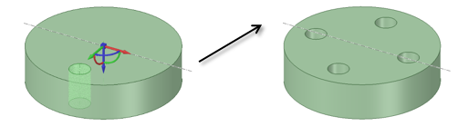 てパターンを作成することもできます。SpaceClaim では、任意のパターンメンバーを使用して作成後にパターンを変更できます。全てのパターンメンバーに対してその変更を行うことができない場合、変更できないメンバーはパターンの一部としてとどまります。[パターンタイプ] を選択すると、フィルが表示され、パターンプレビューが示されます。