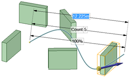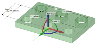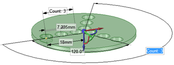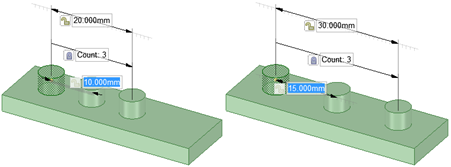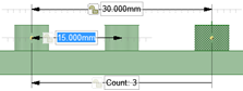 パターンメンバーを選択すると、パターンカウント用のフィールドと選択したメンバーに対する距離が表示されます。Tab キーを押すと寸法