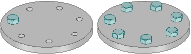 ) とボルト (インポートされたコンポーネント) のパターンなど、複数のオブジェクトタイプを組合せ