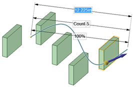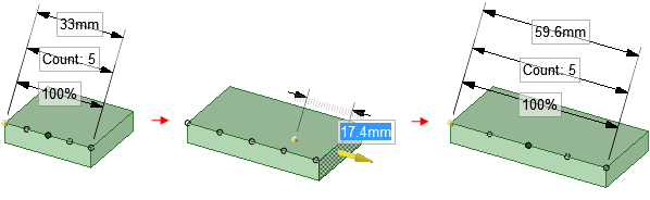 パターンカウントを 1 方向に変更しても、パターンメンバー間の距離は変わりません。その代わり、パターン全体の距離が変更されます。これは、閉じられた錠前のアイコンで表されます。