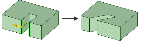 最初にサーフェスのエッジをプルするとエッジが簡略化され、隣接エッジが延長 (またはトリム) される