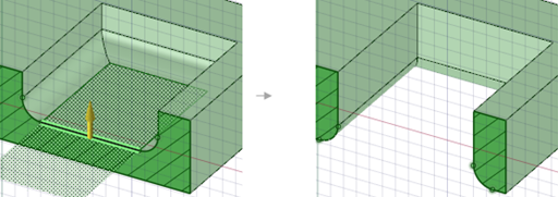 プルの操作にて、材料の削除のみを行います。追加方向にプルする場合には、何も変化はありません。このオプションをその他の [プル] オプションと組み合わせることができます。 |