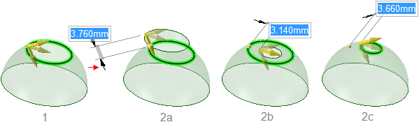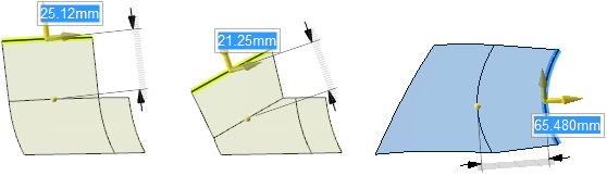 このチェックボックスを選択してサーフェスをプルすると、サーフェスがソリッドに延長されます。これはディフォルトの動作です。オプションの選択を解除してサーフェスをプルすると、サーフェスは新しい位置にオフセットされ、元のサーフェスが変更されます。オプションの選択の有無に関わらず、Ctrl キーを押しながらサーフェスをドラッグすると、サーフェスがコピーされオフセットされます。 |