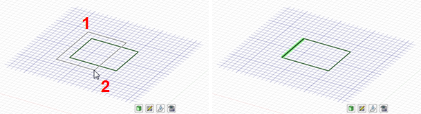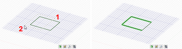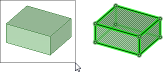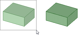 、エッジおよび面がハイライト表示されるのが分かります。最初は、左から右に作成されたボックスでパーツを全て囲むことでパーツを選択します。次に、右から左に作成されたボックスでパーツが選択されます。ボックスにより全ての面は囲まれていませんが、ボックスを通過するパーツは選択されます。マウスボタンを放せば、ハイライトされたオブジェクトを選択できます。