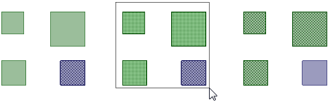 左から右へボックスを作成すると、ボックス内に完全に含まれるオブジェクトのみが選択されます。ボックスは実線で表されます。