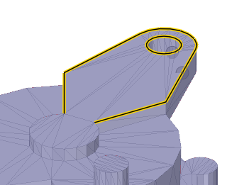 エッジのみが表示されているときのソリッドの面 (図面シートビューなどで): マウスホイールを回して面を選択できます。面がハイライトされると、エッジの線がわずかに太くなります。