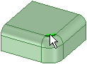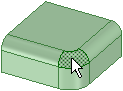 2 つのサーフェスまたはソリッドが共有するエッジ: エッジの上にマウスを置くと、エッジを選択したときにエッジへのアクションで影響を受ける面がシェーディングされます。マウスホイールを回すと、面が切り替わります。