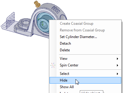 青色のソリッドを右クリックし、[非表示] を選択します。