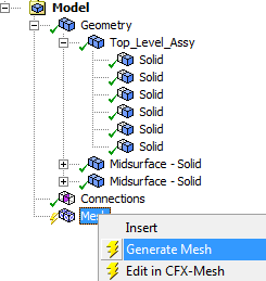 ソリッドのメッシュが生成されます。しばらくの間、 全てのコンポーネントのメッシュの状態を確認してください。