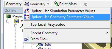 SpaceClaim による Workbench のジオメトリが更新され、変更結果が送信されます。