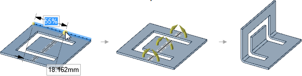 ,に類似した働きをし、シートメタルフラットあるい展開されたパーツ内にベンドを作成するために使用されます。シートメタル面