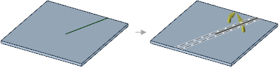 シートメタル面上のスケッチカーブをクリックします。スケッチカーブの長さに関わらず、面全体の長さに渡ってベンドが作成されます。
